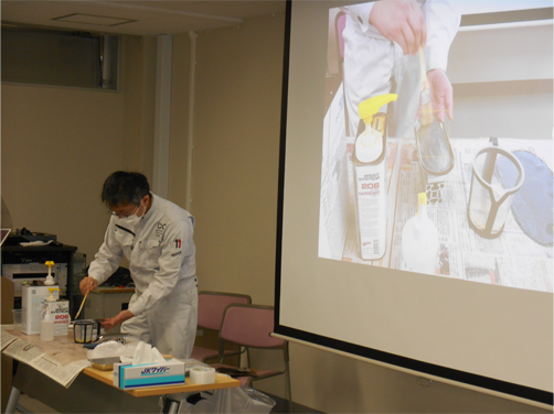 当日は、「炭素繊維複合材料(CFRP)で社会がかわる?」をテーマに、革新複合材料研究開発センターの植村主任技師が説明し、乾主任技師が実演をしました。この講義を通して、高校生のうちから実物に触れることで興味・関心を深め、将来の担い手が増えることを期待しています。